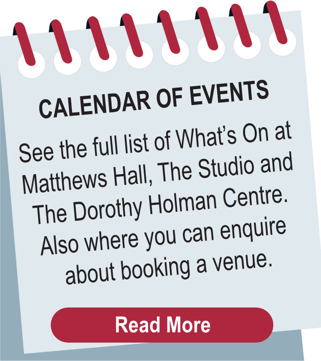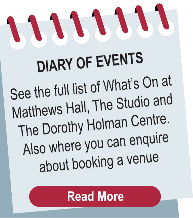 Welcome to our Website where we bring you news and information about our organisation, current projects, planning issues and the many activities at Matthews Hall, Studio Room and The Dorothy Holman Centre. See our Locations Map