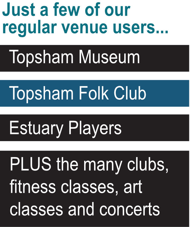 Topsham Theatre Live. To see the full list of uo and coming plays and concerts, also where to but tickets, visit the Theatre Page.